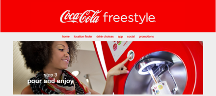 可口可樂在Facebook推出了一款在線應(yīng)用Coca-ColaFreestyle。它能讓你隨意選擇可口可樂旗下的125種飲料,包括知名的可樂、雪碧、芬達(dá)和Powerade等。每選好一種口味,只需點(diǎn)擊屏幕上的按鈕,通過控制按住鼠標(biāo)時(shí)間的長短來決定飲料的多少。當(dāng)你的杯子裝滿以后,你就可以為這款獨(dú)一無二的飲料命名。你也可以在iPhone和Android商店里找到對應(yīng)的應(yīng)用游戲。